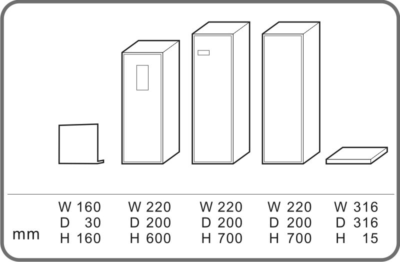 Dimensions(mm):W 220 * D 200 * H 700.